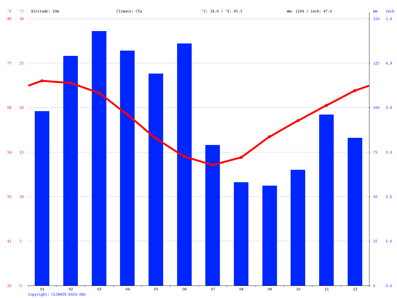 Port Macquarie climate Average Temperature, weather by month, Port from en.climate-data.org
